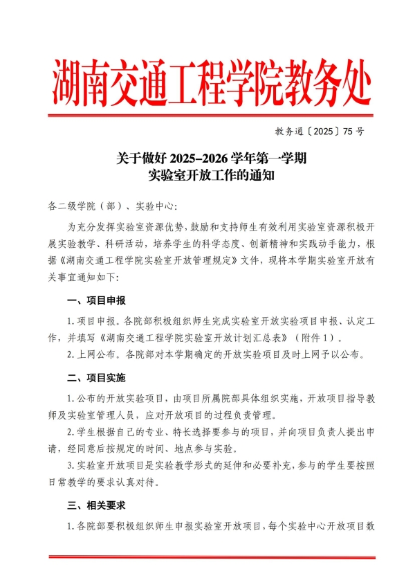 关于做好2025-2026学年第一学期实验室开放工作的通知