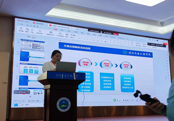 校团委副书记任文露从个人成长角度分享志愿服务经历,回顾了自己从一名普通新生逐步成长为能够独立带领团队的学生骨干的过程,并现场介绍了“志愿汇”平台的基本功能及常见操作注意事项,帮助新生顺利融入志愿服务体系。