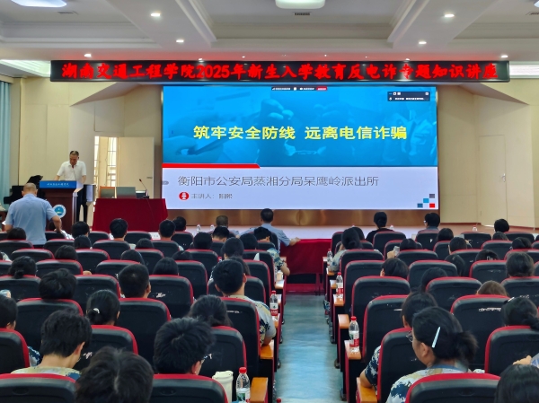 随后,衡阳市公安局蒸湘分局呆鹰岭派出所副所长阳熙作了题为《筑牢安全防线 远离电信诈骗》的专题辅导报告。他结合高校真实案例,深入剖析了网络刷单、冒充公检法、网络贷款、虚假购物、校园贷等常见诈骗类型的作案手法、话术套路与心理操控机制,并系统讲解了“不轻信、不泄露、不转账、及时报警”等实用防范策略。此外,阳熙全面介绍了当前国际国内反电信诈骗的严峻形势与治理进展,阐释了电信诈骗对个人与社会造成的多重危害,还详细解读了我国在推进“反电诈人民战争”中所采取的法律政策、技术反制与群防群治措施。