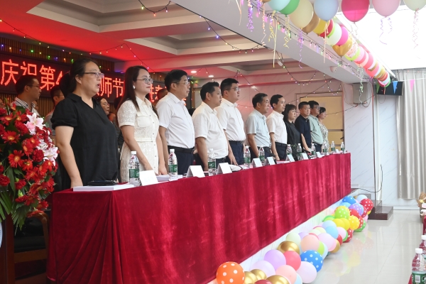 大会在庄严的国歌声中启幕。首先,刘福生向全体校领导和部门负责人献花,向默默坚守的教育工作者致以诚挚敬意。
