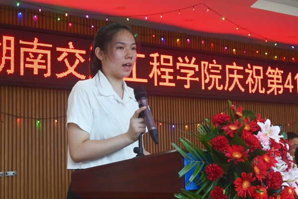 经济管理学院国贸2201班邓捷文代表学生发言,她向所有孜孜不倦,辛勤耕耘在教学一线的老师们致以崇高的敬意和感谢。她说:“作为新时代大学生,能回报老师的就是牢记你们的教育,努力学习、奋勉向上,认真踏实的学好老师教给我们的学问和技能,使自己成长为有益于社会、服务于社会、奉献于社会的高素养应用型人才。”