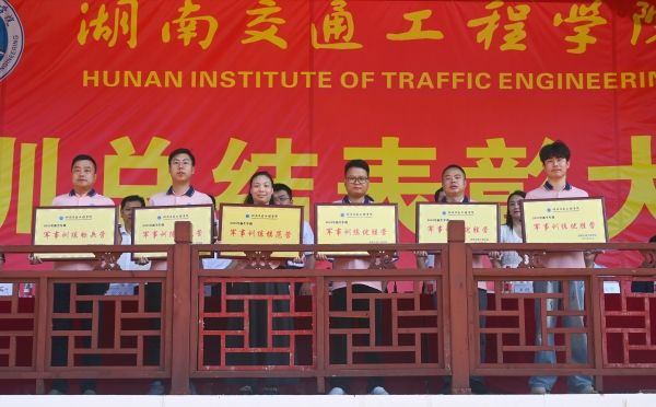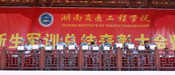 在14天的军事训练中,涌现出一批优秀学员和优秀教官,蔡炎斌宣读了“关于表彰2025年新生军训先进集体和优秀个人的决定”。授予四营(经济管理学院) 为军事训练标兵营,授予二营(交通运输工程学院)、三营(机电工程学院)为军事训练模范营,授予五营(电气与信息工程学院)、一营(医学技术与护理学院)、六营(人文与艺术学院)为军事训练优胜营;授予一营一连等 10 个连为优秀连;授予刘苏瑶等 10 位教官为优秀教官;授予曾小飞等 6 位同志为优秀指导员;授予柳思彤等 162 位同学为优秀标兵。校领导分批次为获奖集体和个人颁奖。