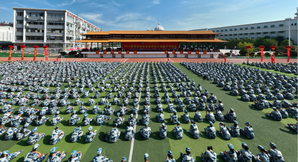 9月14日上午,学校在田径运动场隆重举行2025级新生军训成果汇报表彰大会暨开学典礼。数千名新生在师长和亲友的瞩目下,翻开追逐梦想的新篇章,踏上人生征程的新起点。数万名师生、家长通过学校官方视频号及在线学习平台线上观看直播,共同见证这一重要时刻。董事长刘福生、党委书记刘文君、执行校长刘杰、常务副校长彭文武、纪委书记刘毅,副校长蔡炎斌,董事董晔卉,党委委员邓丽、赵荣华、罗斐出席。相关职能处室负责人,各二级学院院长、党总支书记(副书记),全体教官、辅导员和教师代表以及2025级新生参加了典礼。典礼由彭文武主持。