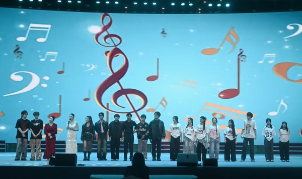 告别了“大学枢纽”的探索与积淀,列车正缓缓驶入第三站《时代广场》。如果说“大学枢纽”是为梦想积蓄能量的港湾,那么“时代广场”便是让青春与时代同频共振的舞台。在第三篇章《时代广场》中,人文与艺术学院一场充满活力的《音乐课堂》正式开课!当青春的旋律在校园里唱响,当新生的活力撞响时代的节拍,晚会的舞台,被这份蓬勃的朝气点得闪亮闪亮!校学生会的新生歌曲串烧《绿光》,是一场充满希望与力量的表演。绿光象征着希望和奇迹,寻找绿光的过程就像一场奇妙的际遇,翻越山峰,穿越云层,寓意着寻找幸福和成功的决心。