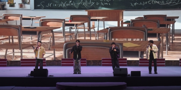 第一篇章《故乡月台》。校社团联合部以现代舞《16shorts》为题,分享初入校园的憧憬与感悟;校主持队以情感丰富的诗朗诵《开学第一天》,通过不同的声音与故事,为新同学们勾勒出大学生活的模样,也为同学们的青春之旅送上第一份温暖的指引。人文与艺术学院则用校园情景剧《大学第一课》传递青春共鸣。大学第一课,是知识的启蒙,更是精神的传承;它或许藏在师长的谆谆教诲里,藏在学长学姐的经验分享中,更藏在那些跨越岁月、依然闪耀的榜样力量里;大学第一课,为青春艺术思政课写下生动注脚。